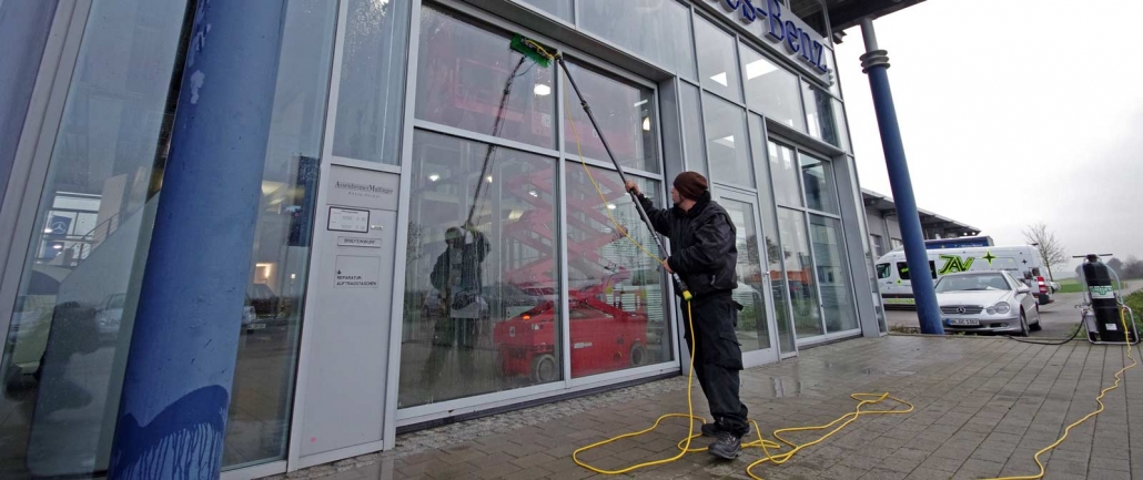 Les façades vitrées et les fenêtres de votre propriété sont polluées par les influences climatiques telles que la pluie, la neige et le vent. Des fenêtres sales obscurcissent la vue vers l’extérieur d’une part et rendent la vue vers l’intérieur plus difficile d’autre part, ce qui dévalorise la présentation des produits surtout dans les vitrines et les façades vitrées et laisse une impression non professionnelle aux visiteurs et aux clients.